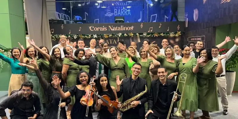 O Shopping Barra abriu sua temporada natalina com apresentações de corais que revisitam clássicos do Natal. Grupos infantis e adultos se apresentam gratuitamente ao longo do mês.
